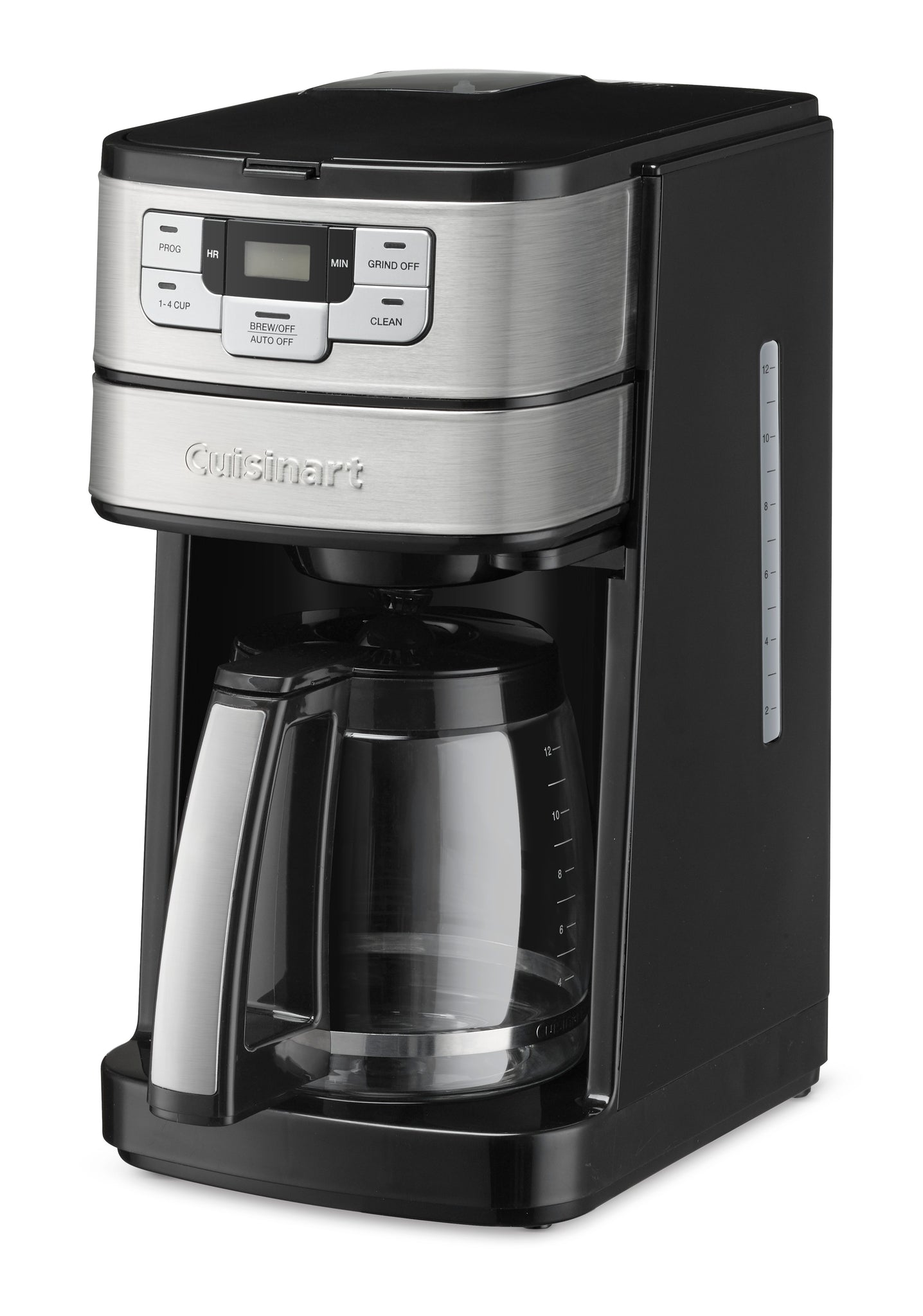 Making fresh-ground coffee at home is easy with the Cuisinart® Automatic Grind & Brew 12 Cup Coffeemaker. Designed with a powerful blade grinder that automatically grind beans just before brewing, it does all the work for you with programmable 24-hour brew start, adjustable auto-off, and 1-4 cup setting options. Preset to have a pot of hot, delicious coffee ready first thing in the morning. Don't want to wait for a full pot to brew? Use the Brew Pause™ feature to enjoy a cup without interrupting the brew cycle. Have pre-ground coffee? Use the grind-off option to brew it to perfection. Versatile and simple to use, the Automatic Grind & Brew spares you the trip to the coffee shop. Maximum convenience and fr