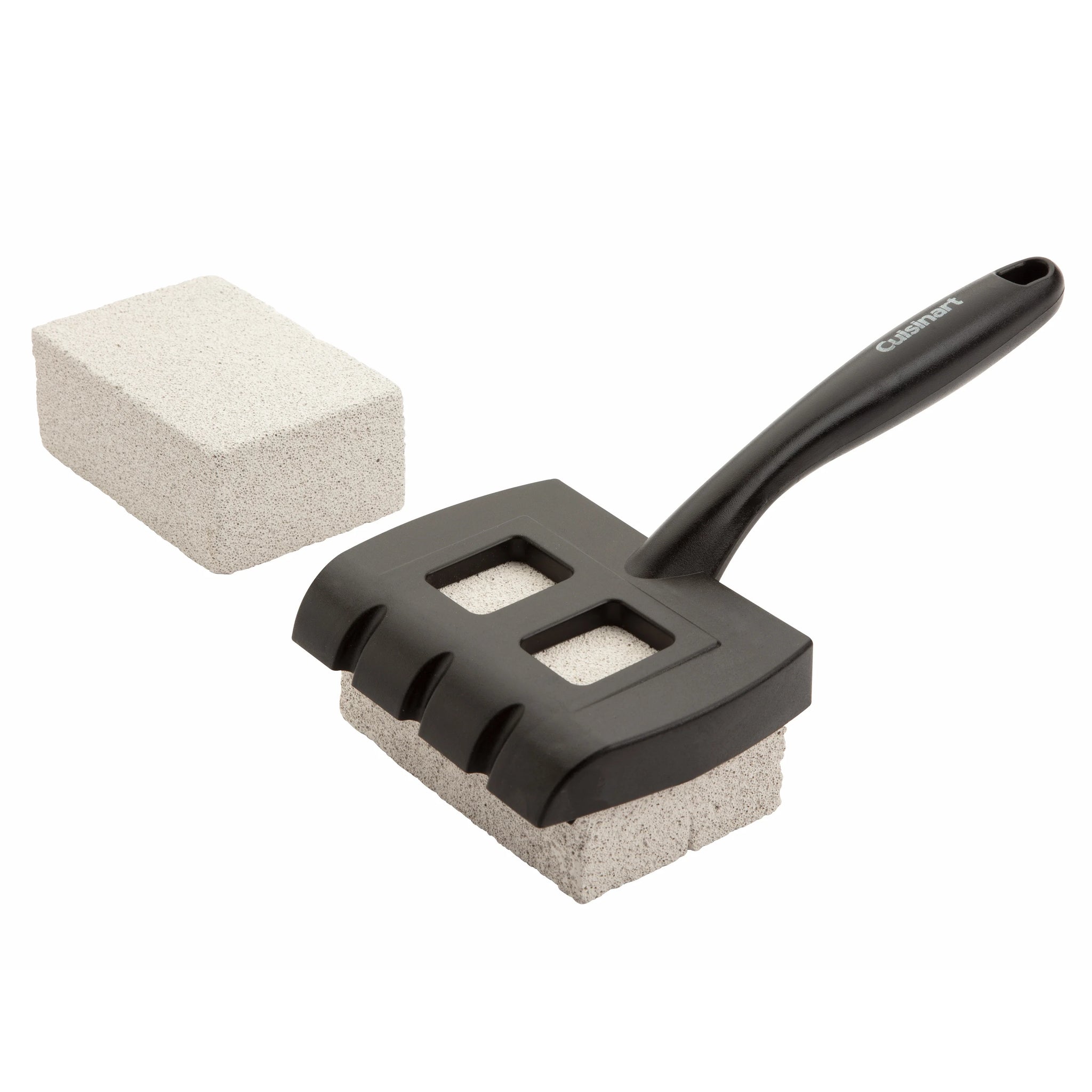 The Cuisinart® Grill Cleaning Stone is the ideal cleaning tool for tough messes on your grill. The grill stone comes with a cleaning handle and a replacement cleaning stone. The cleaning handle firmly grips the stone and allows you to safely reach all areas of your grill while cleaning. The stone measures 4.75" x 3.0" and covers a wide area of your grill surface while cleaning. The gritty material of the stone easily breaks up burned-on food and grease with ease. As you use the stone, it will begin to form to your specific grilling surface, giving you a custom cleaning experience. The stones make for a safe alternative to traditional wire bristles brushes that can come loose and get stuck in your food.