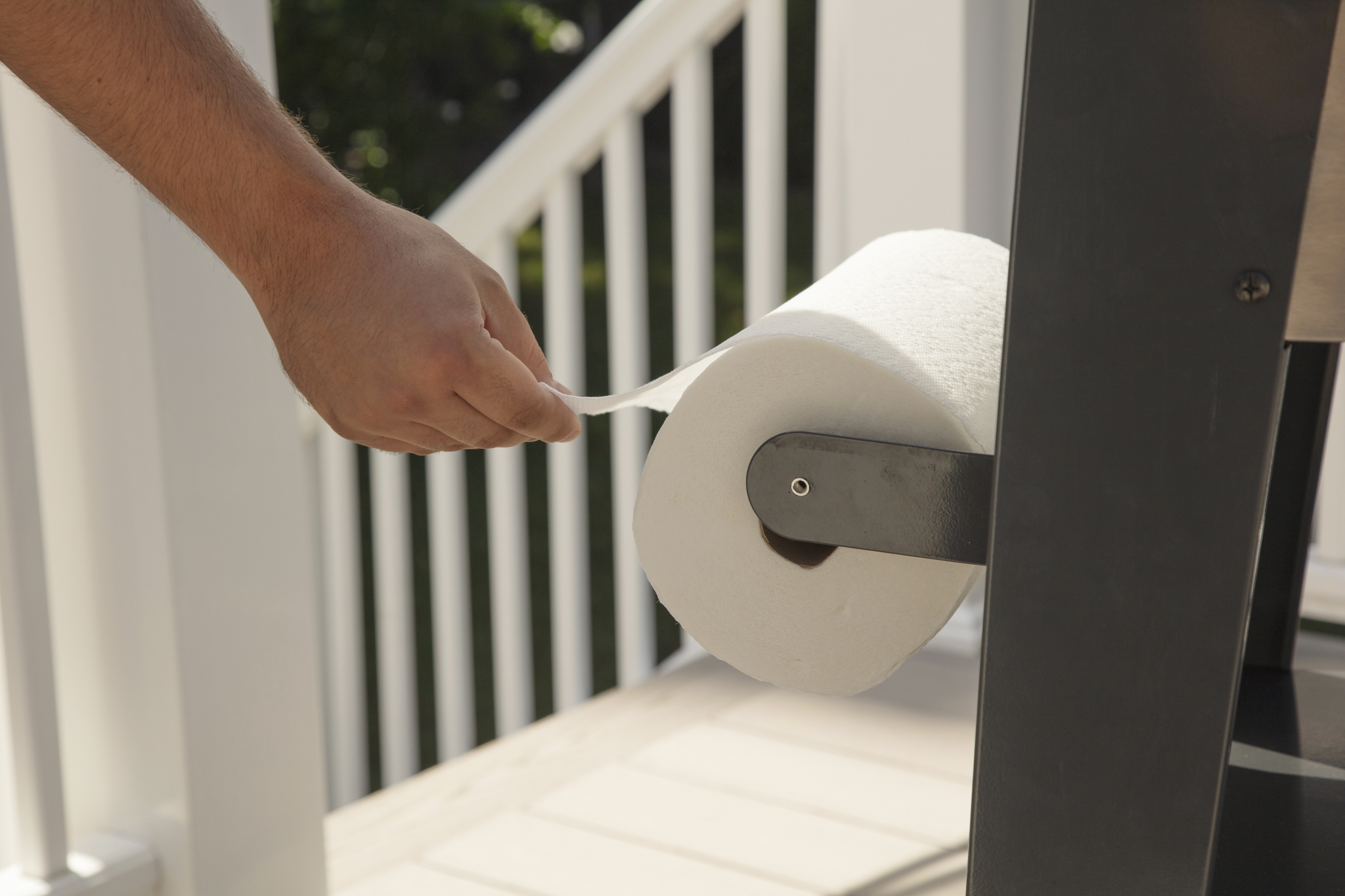 - PAPER TOWEL HOLDER: The paper towel holder holds a full roll of paper towels, allowing you to keep them handy while grilling.