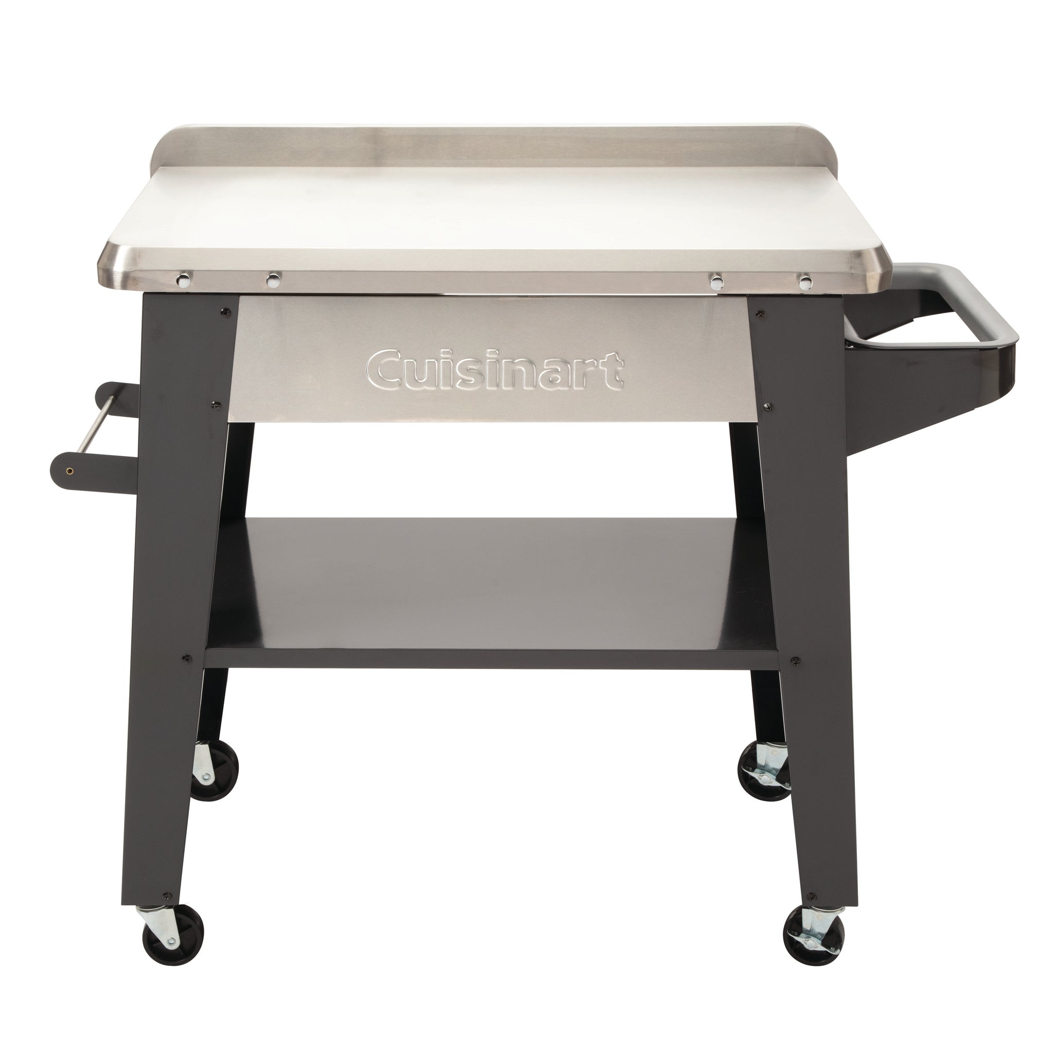 Expand your outdoor grilling prep space with the Cuisinart® Outdoor Prep Table. This stylish prep table features a 36" x 22" stainless steel work surface which provides plenty of space for prepping and seasoning meats, vegetables, fish and more. The integrated trash bag holder allows for easy disposable of trash and food waste from the work surface. Paper towels are always necessary when prepping and cooking outdoors, that's why the Prep Table comes equipped with a paper towel holder, to make sure you always have some handy. The 4 swiveling casters make moving the table effortless, allowing you to easily situate it in the perfect spot in your yard. The storage shelf allows you to keep all of your grilling essentials handy while outside, cutting down on time back and forth to the kitchen.