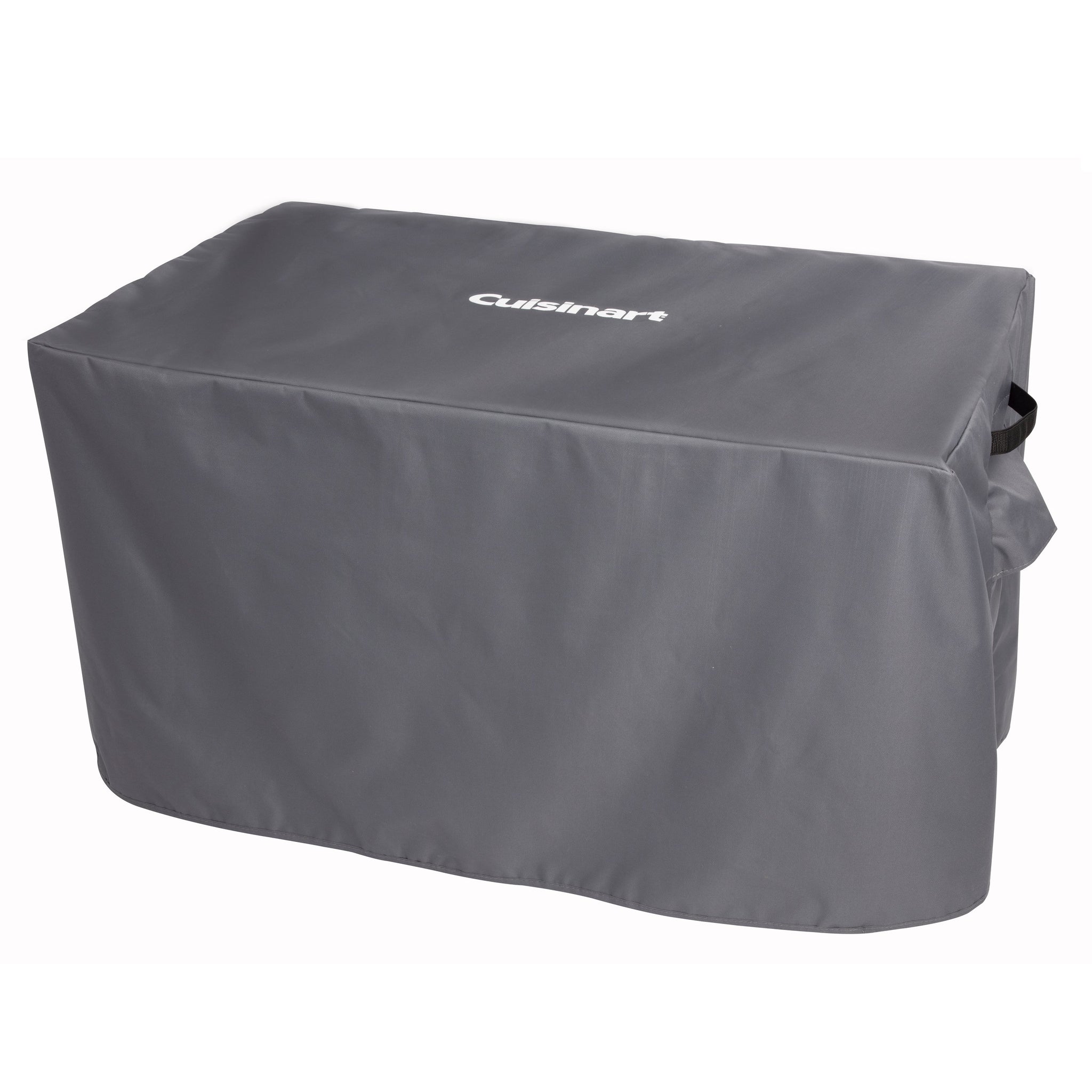 Protect your patio heater from the elements with the Cuisinart® Backyard Fire Pit Table Cover. To maintain a dry environment, the cover features side vents designed to prevent condensation. It features large handles on each side that make it easier to adjust when placing or removing the cover. The cover is UV protected, wind and water-resistant and the dual-sided vents dissipate excess heat and prevents condensation. The cover features two Velcro straps for tightening around the legs of the table and has dual-sided sturdy grip handles for easy removal of the cover. It measures 42"x27"x 24" and fully covers most Rectangle Propane Gas Fire Pit Tables.