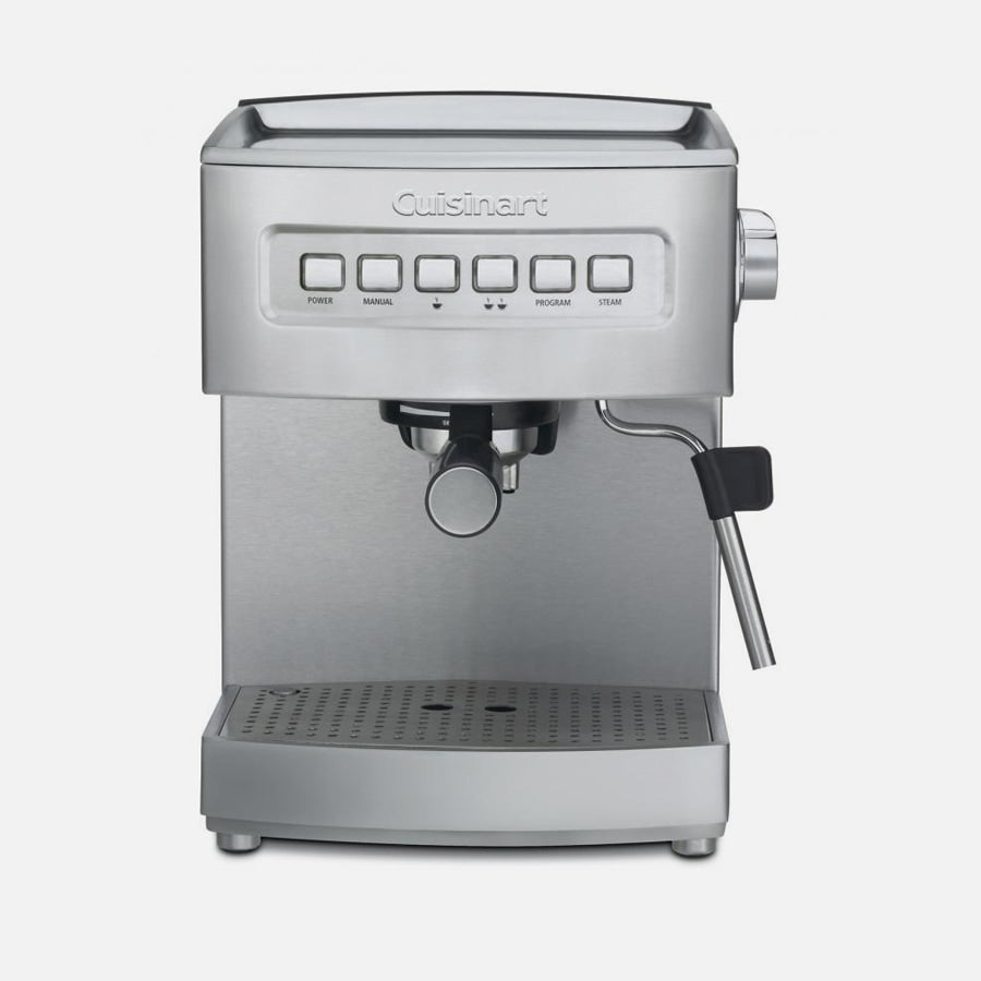 Want a single or double espresso? The choice is yours with the Cuisinart® Programmable Espresso Maker! Program a single or double espresso and savor the rich flavors that Cuisinart® brings out with 15 bars of pressure, or add hot water for an Americano, or add frothed milk for a creamy cappuccino or luscious latte. The stainless stem nozzle and frothing cup makes barista beverages easy. The Programmable Espresso Maker also features a cup-warming plate, removable drip tray, and cover for convenience.